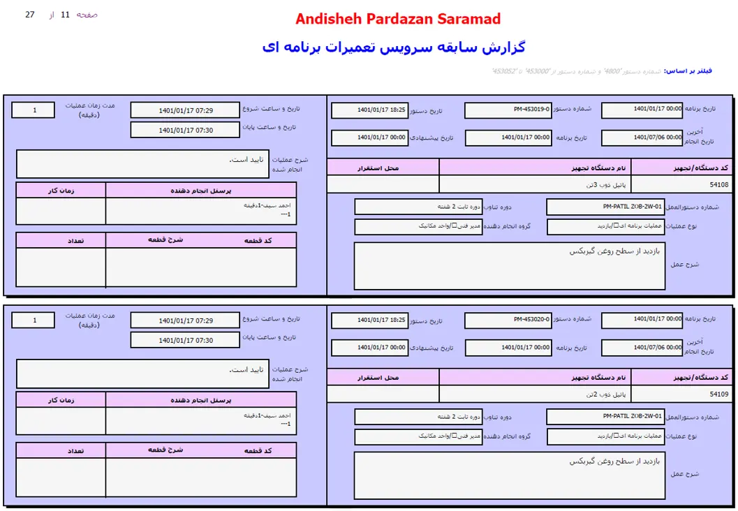 ما بیشتر از ۳۰ سال است که در حال تولید سیستم های تخصصی نگهداری و تعمیرات(CMMS , EAM) هستیم و همواره در تلاشیم تا بهترین نرم افزار های نگهداری و تعمیرات و مدیریت دارایی سازمانی را تولید و مهندسی کنیم.